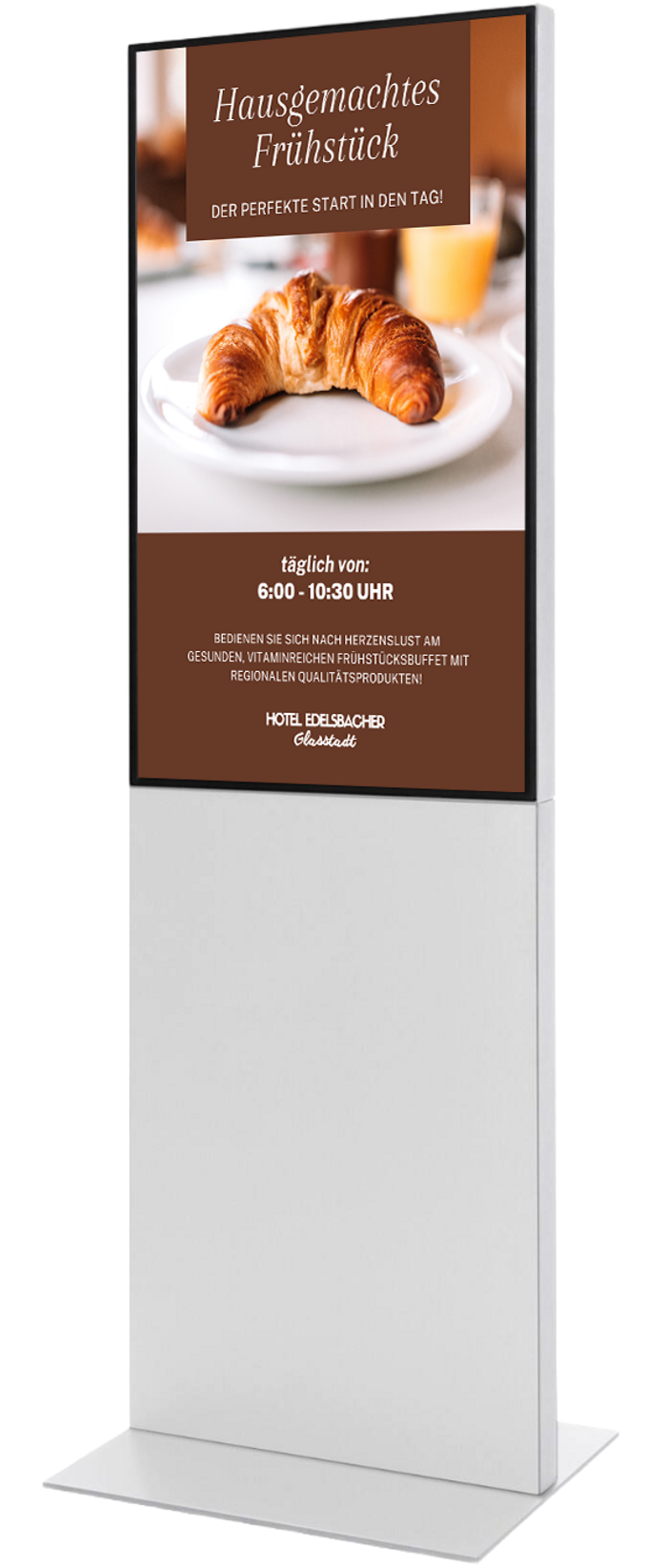 in4me bietet eine große Auswahl an Digital Signage Produkten, die den Hotelalltag moderner und effizienter gestalten.