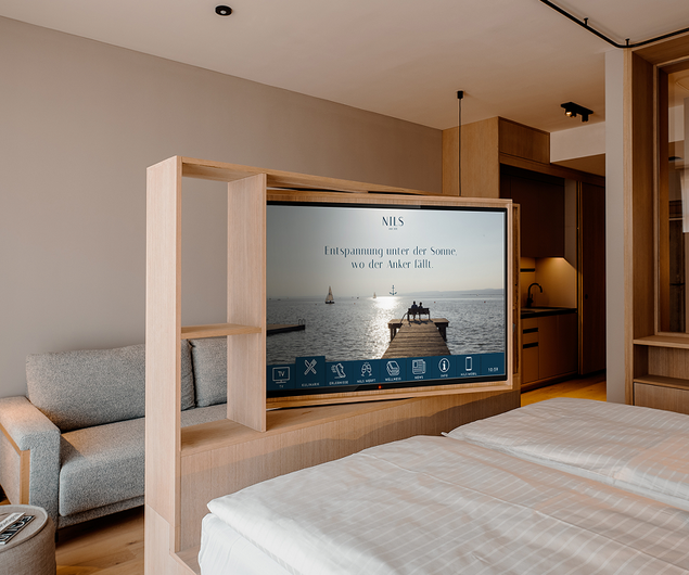 Die Hotelgruppe setzt auf eine zentrale TV-Lösung mit einheitlichem Branding, digitaler Gästemappe und SEP7-Steuerung.